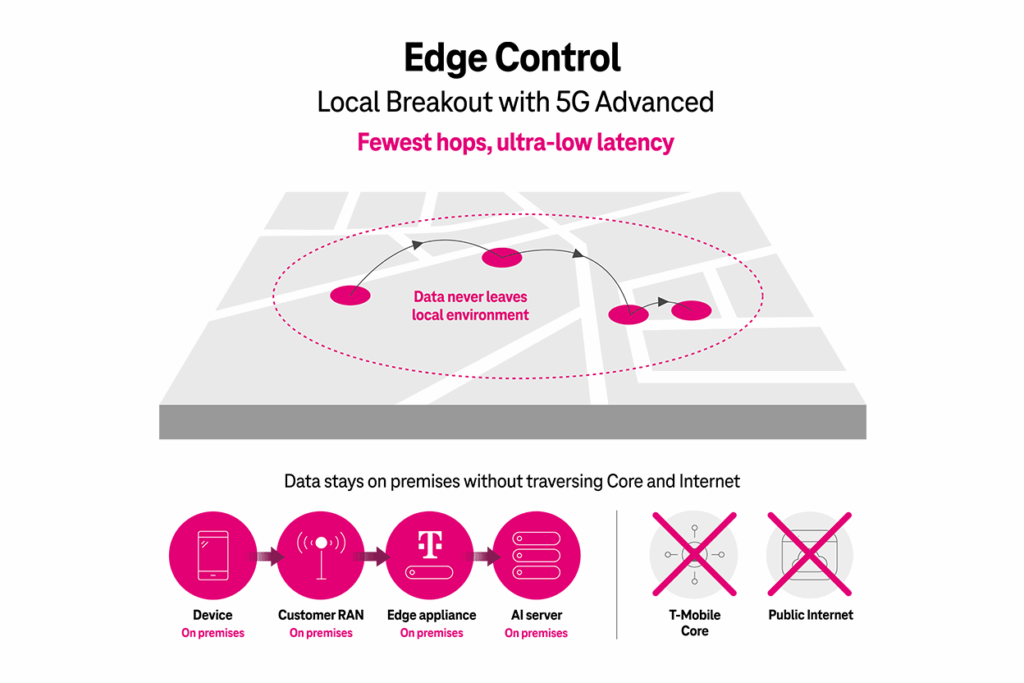 And because Edge Control is built on T-Mobile’s 5G Advanced network, it offers an industry-first advantage — traffic is routed precisely where an organization wants it to go with fewer “hops,” even if users are across the country. This means faster data delivery, avoiding the delays of traditional VPN tunnels. Even remote users and endpoints maintain low-latency performance and meet data sovereignty requirements through optimized intra-network routing. Instead of detouring traffic through multiple checkpoints, Edge Control creates a secure local “on/off ramp” that gives data a direct, efficient path.