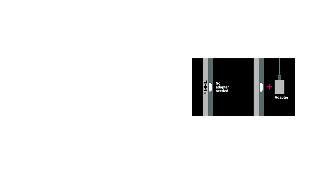 Most newer TVs have HDMI ports that look like this. If one of the ports has an MHL® logo over it, then your TV is MHL enabled. MHL-enabled TVs won’t need an adapter; non-MHL-enabled TVs WILL need one.